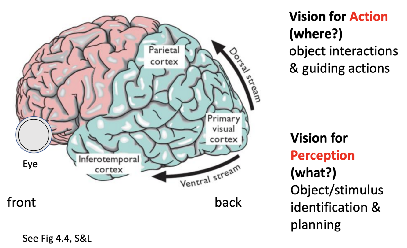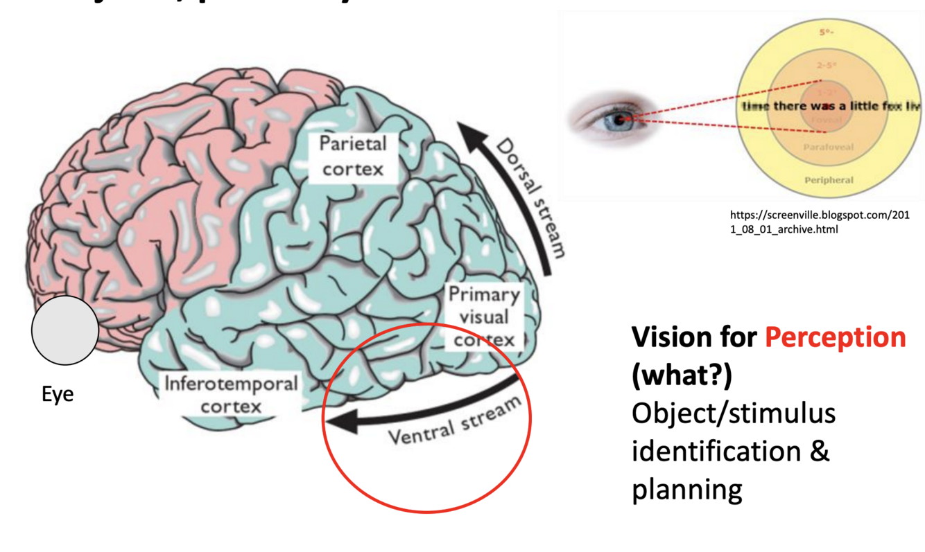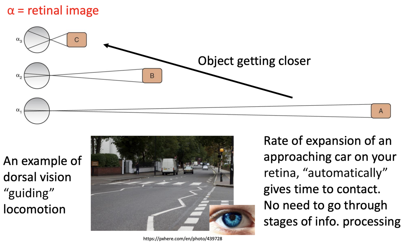 Dorsal vision provides information about time-tocontact (tau): rate of expansion of object on retina