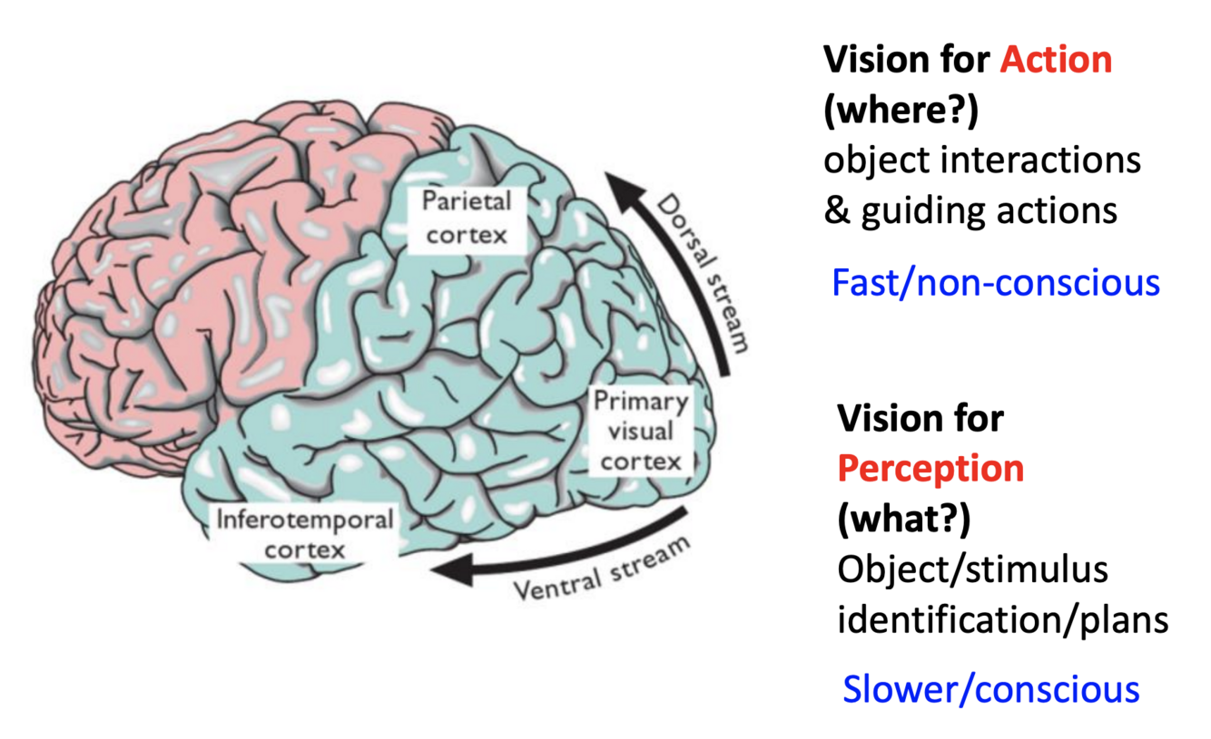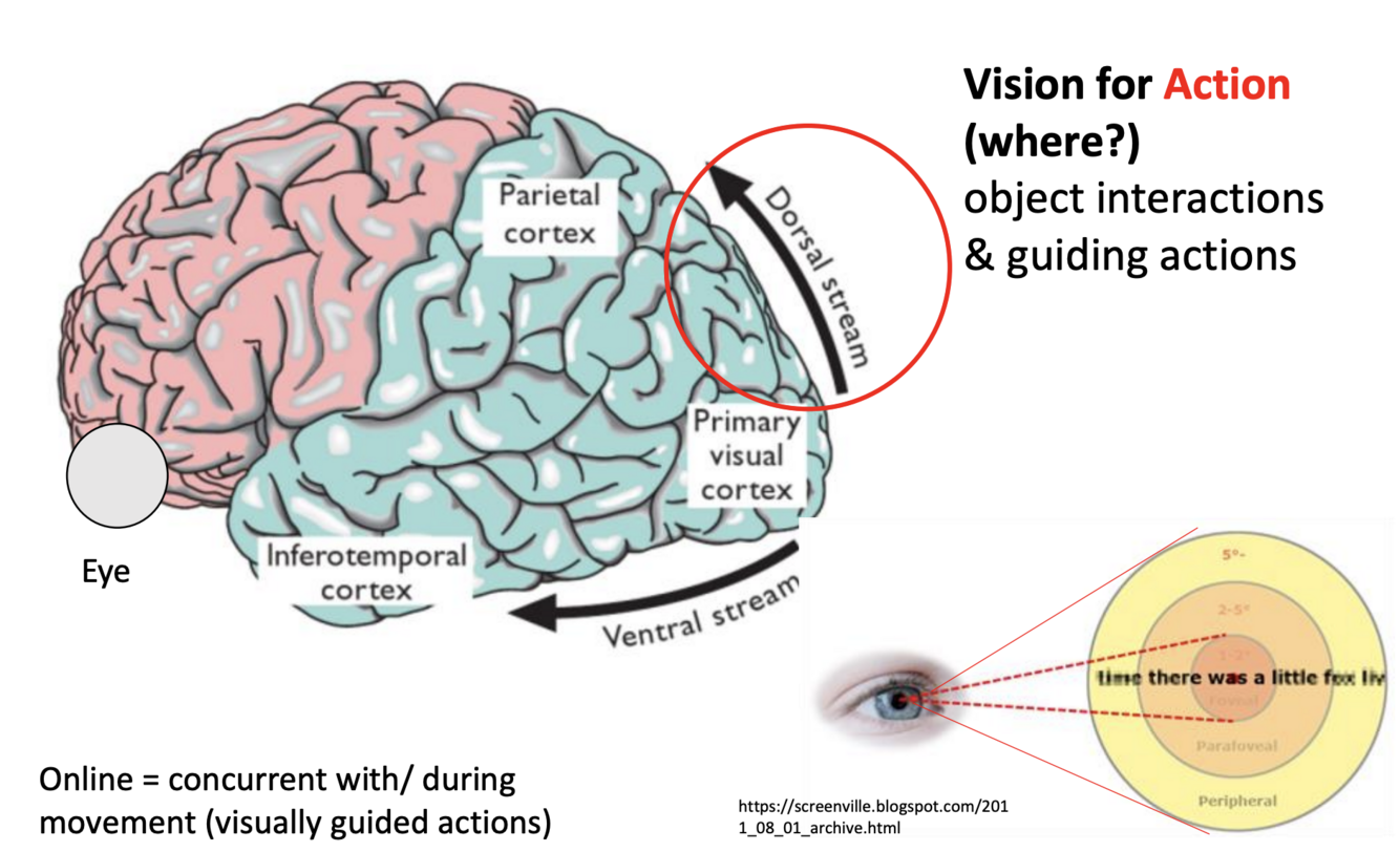 What is Other evidence for fast vision-for-action (dorsal) regulation of motor control?