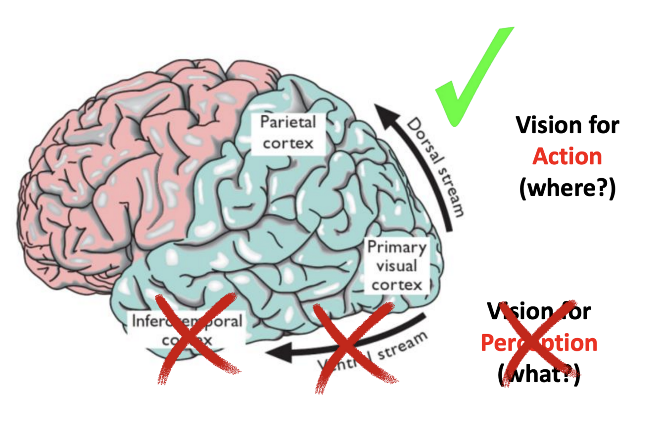 “Thus, when asked to grasp a presented object, he would miss it regularly & would find it only when his hand knocked against it.”