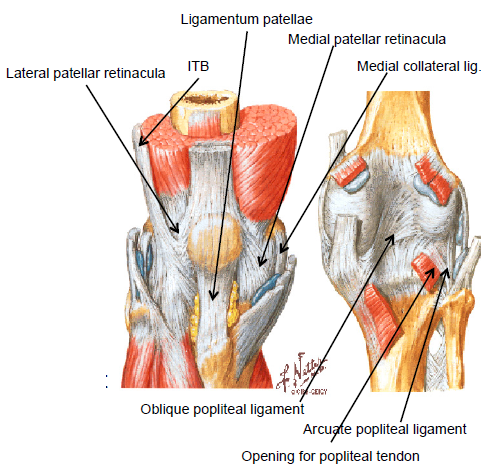 What is the knee joint reinforced by?