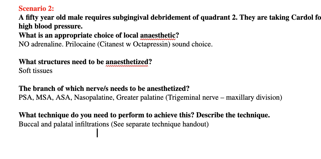 A fifty year old male requires subgingival debridement of quadrant 2. They are taking Cardol for high blood pressure.