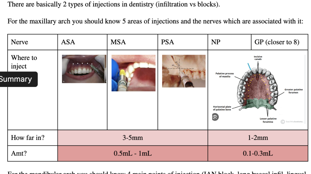 Maxillary injection site/numbers