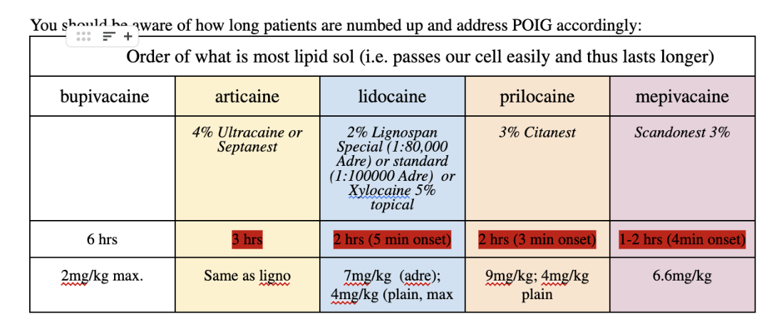 1. What is an appropriate choice of local anaesthetic?