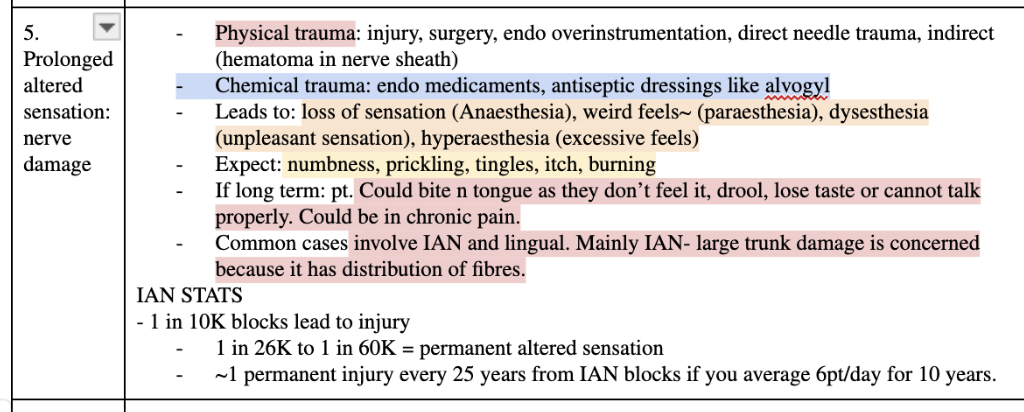 Prolonged altered sensation: nerve damage