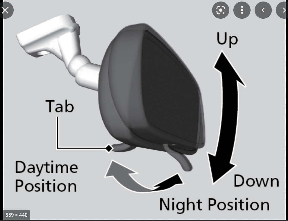 utilisez la position nuit du rétroviseur intérieur (night position of the interior mirror)