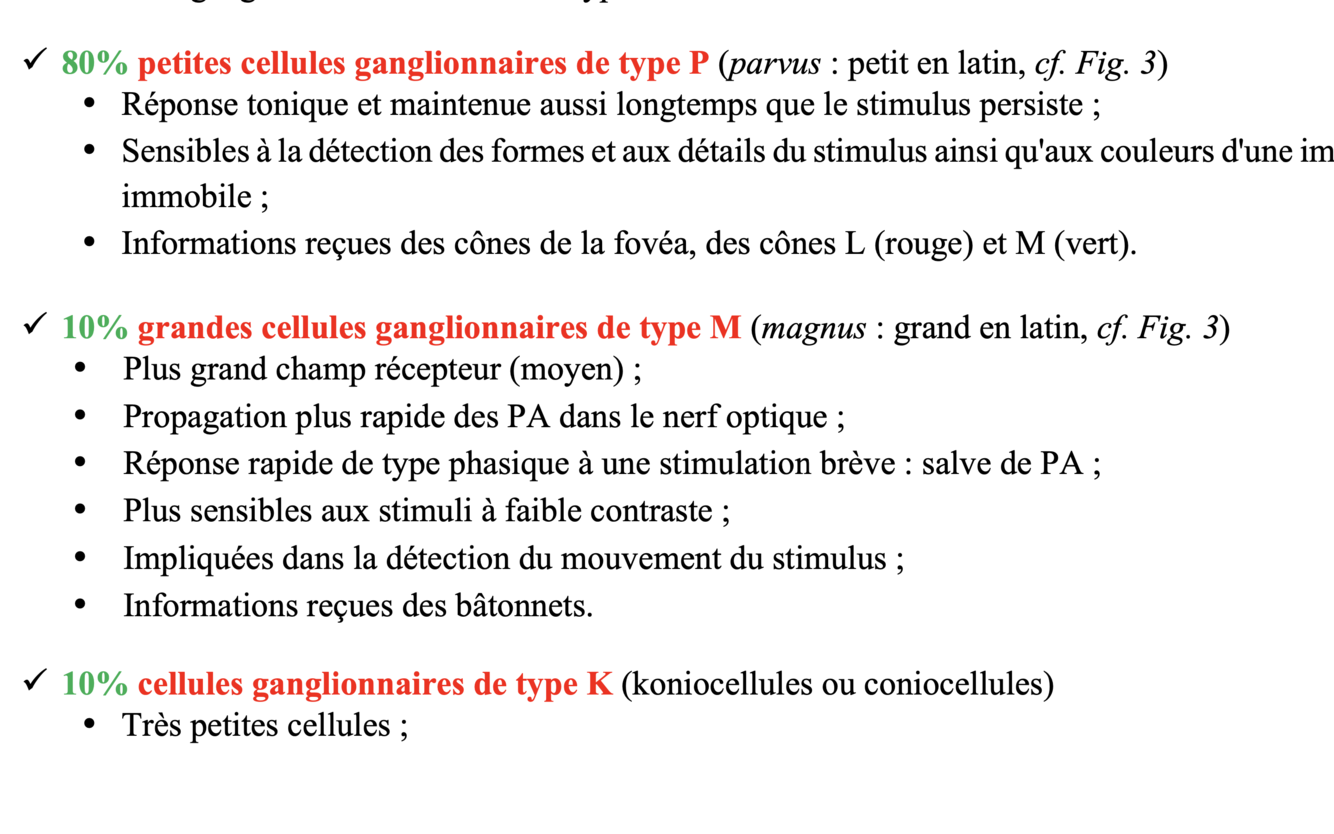 Il est à noter qu’il existe d’autres cellules importantes dans la rétine : les cellules amacrines et les cellules horizontales (dans la couche granulaire interne).