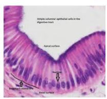 Single layer of cells that are taller than they are wide. Located where secretion and absorption occur. May have microvilli or cilia