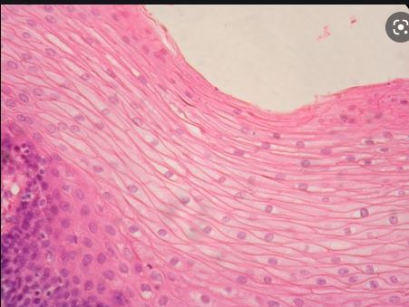 Mulitple layers of cells that are squamous at the apical surface.**_