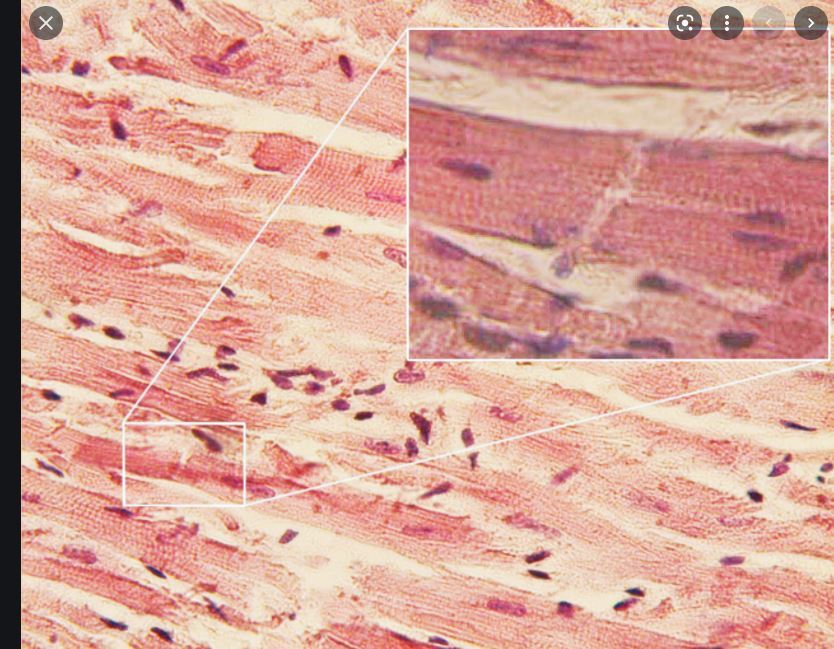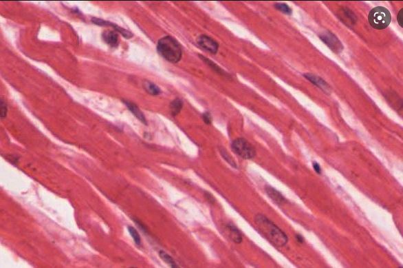 Has STRIATIONS. Cylindrically shaped and are MULTINUCLEATE (several nuclei)