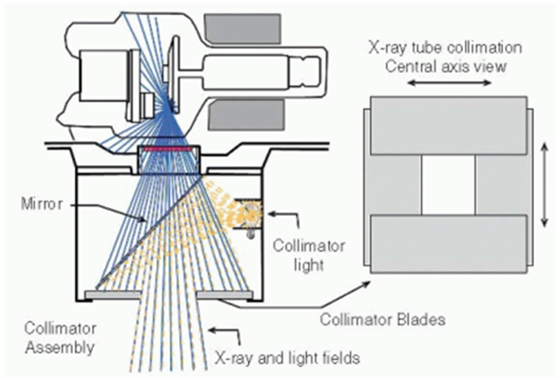 How well the collimator regulates the beam size and whether the area illuminated by the positioning light and the area exposed by the x-rays are the same.