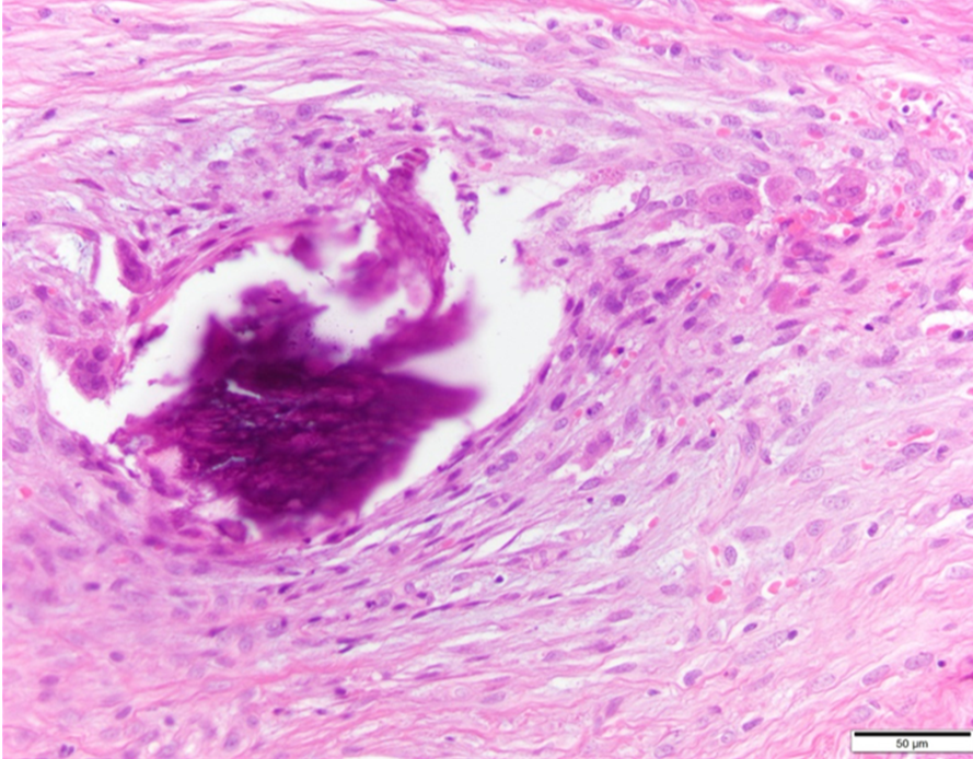 Is the mineral in this case the result of dystrophic or metastatic mineralization?