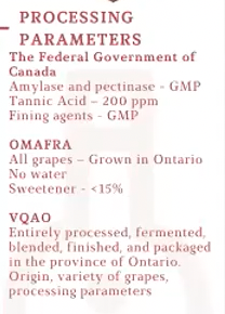 What are the processing parameters that The federal government of Canada, OMAFRA, VQAO says for grapes?