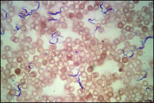 Kinetoplast is the dense granule of DNA in the mitochondria at the posterior end of the cell. The flagellum runs along the side of the body and inserts into the end of the cell, aiding in undulating movement. It is a zooflagellate
