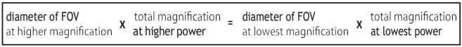 At lower power, there is more light and a greater field of view but lower resolution. At higher power, there is higher resolution but less light and a lesser field of view.