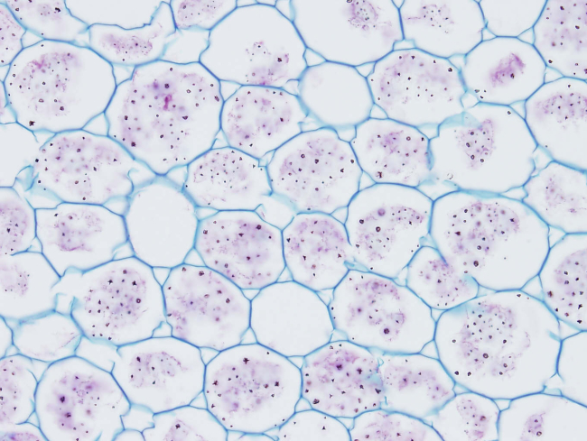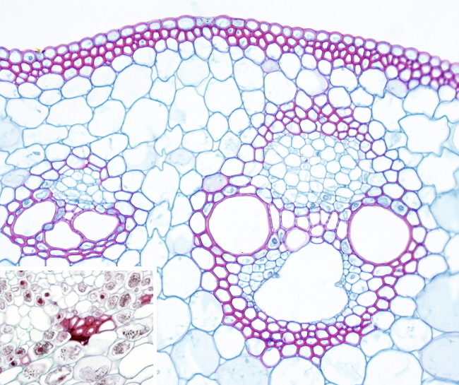 Are the tiny cells around the vascular system in the photo schlerenchymal, parenchymal, or collenchymal?