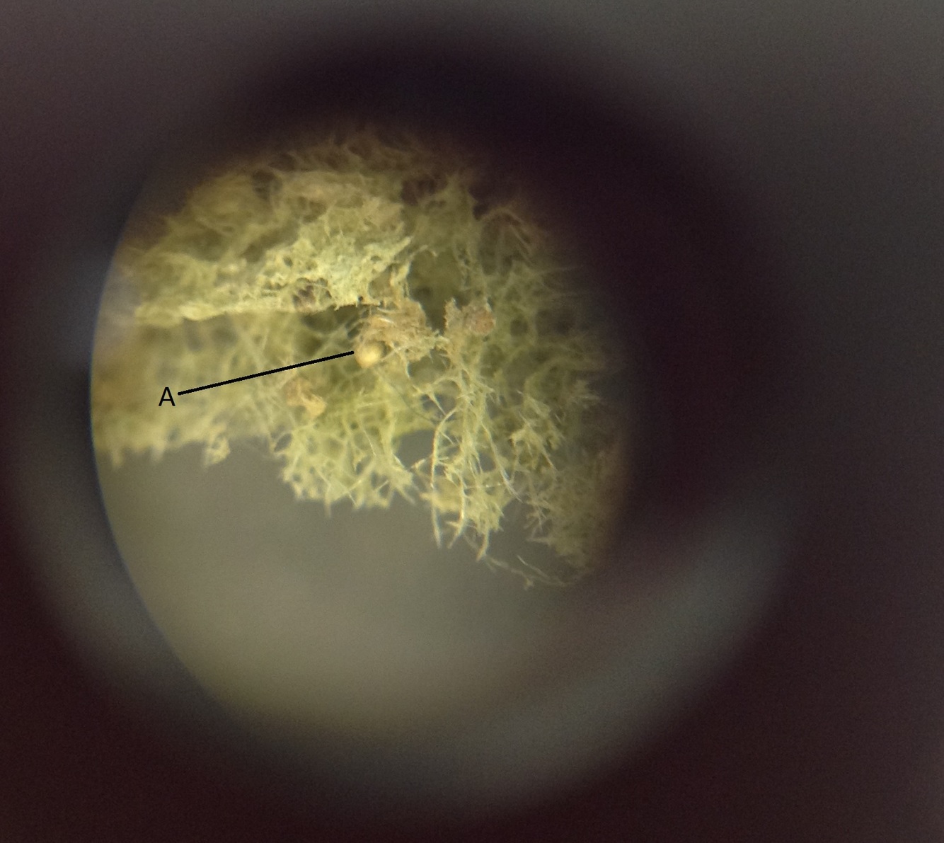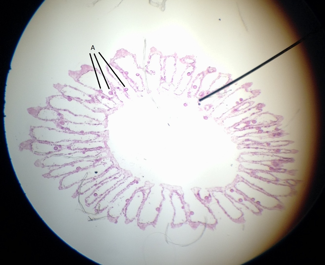 In this cross section of a sponge, what is located at “A”?