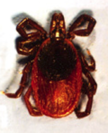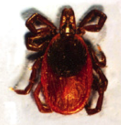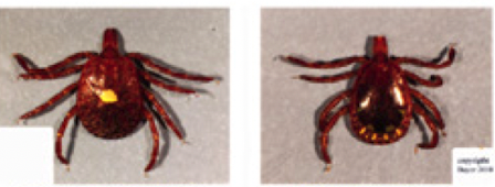 — ticks possess a rigid chitinous scutum on their dorsal surface. anterior mouthparts