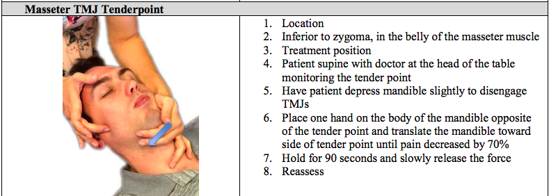 What is the correct setup and technique for Masseter TMJ counterstrain?