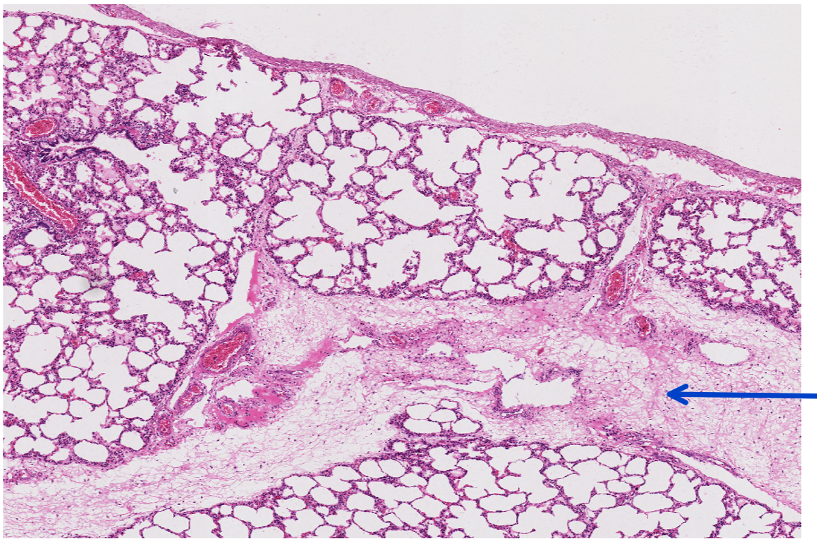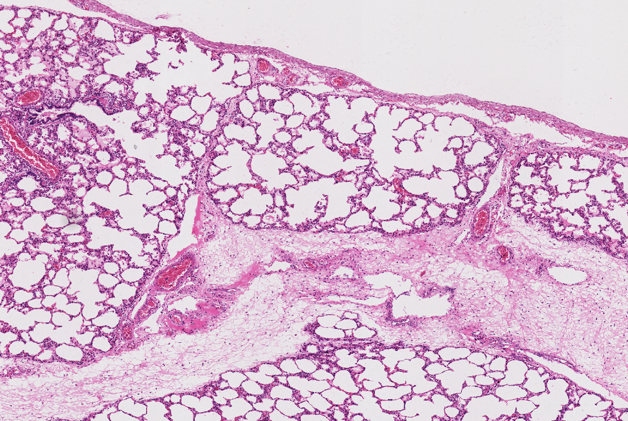 This is a slide from the lung of a pig, what would the histomorphologic diagnosis?