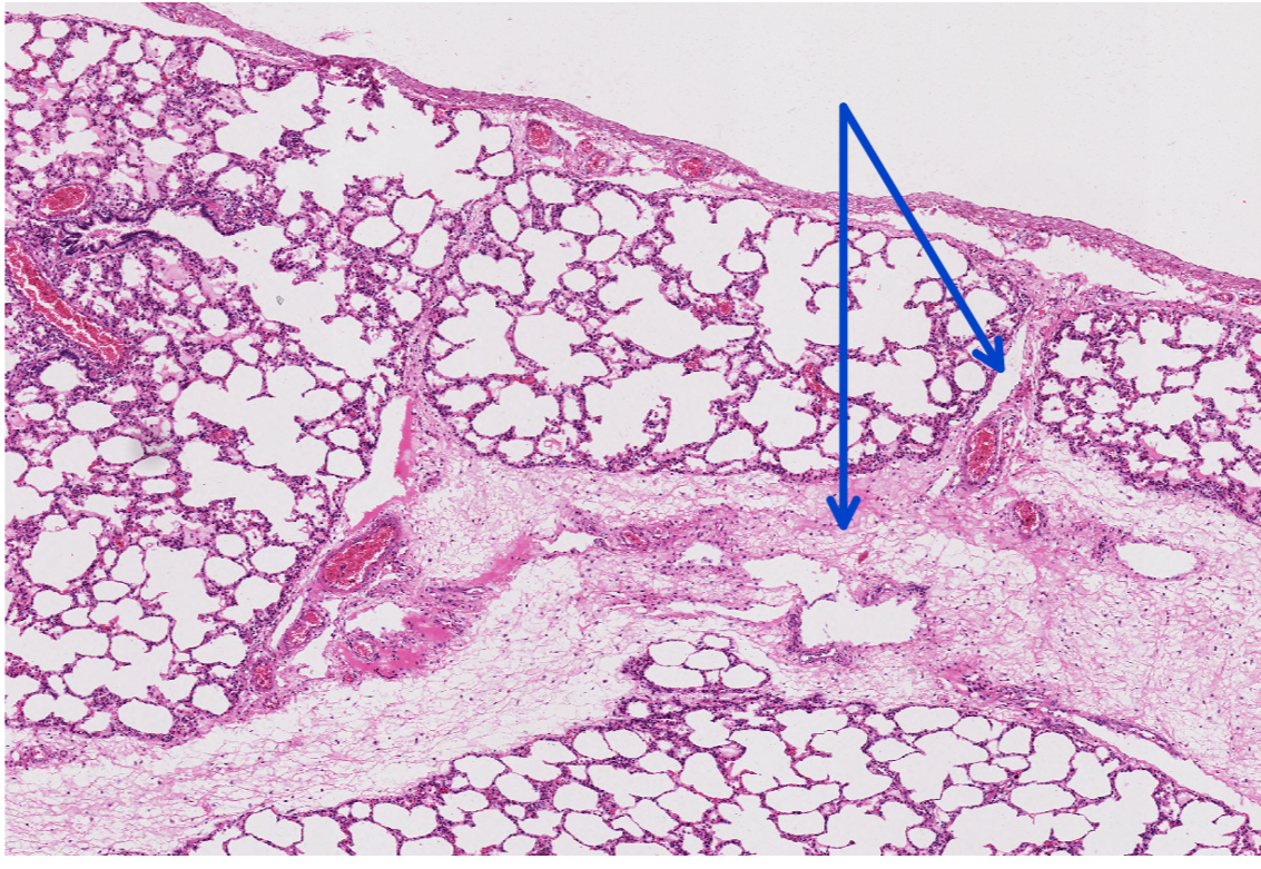 This is a slide from the lung of a pig, what are the dilated clear spaces in this picture?