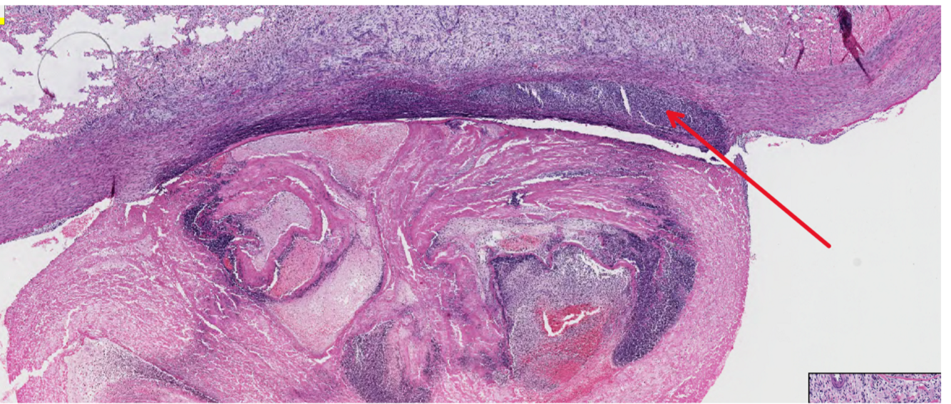 arterial thrombus (chronic) with chronic arteritis