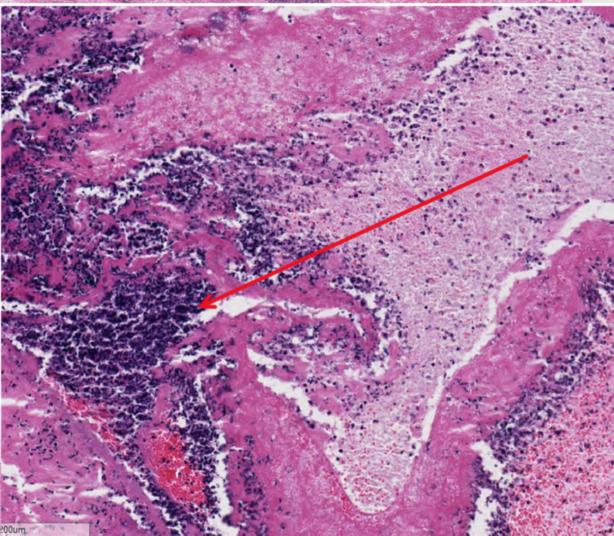 This is a slide from the lung of a pig, what could cause this lesion?