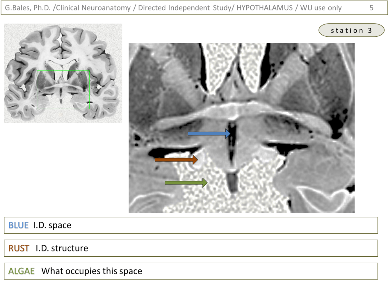 1) Blue – 3rd ventricle (Hypothalamus lecture – slide 10)