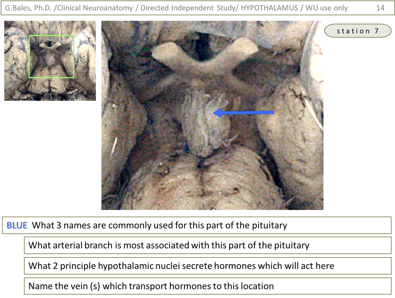 1) Blue – anterior pituitary, adenohypothalamus, pars distalis