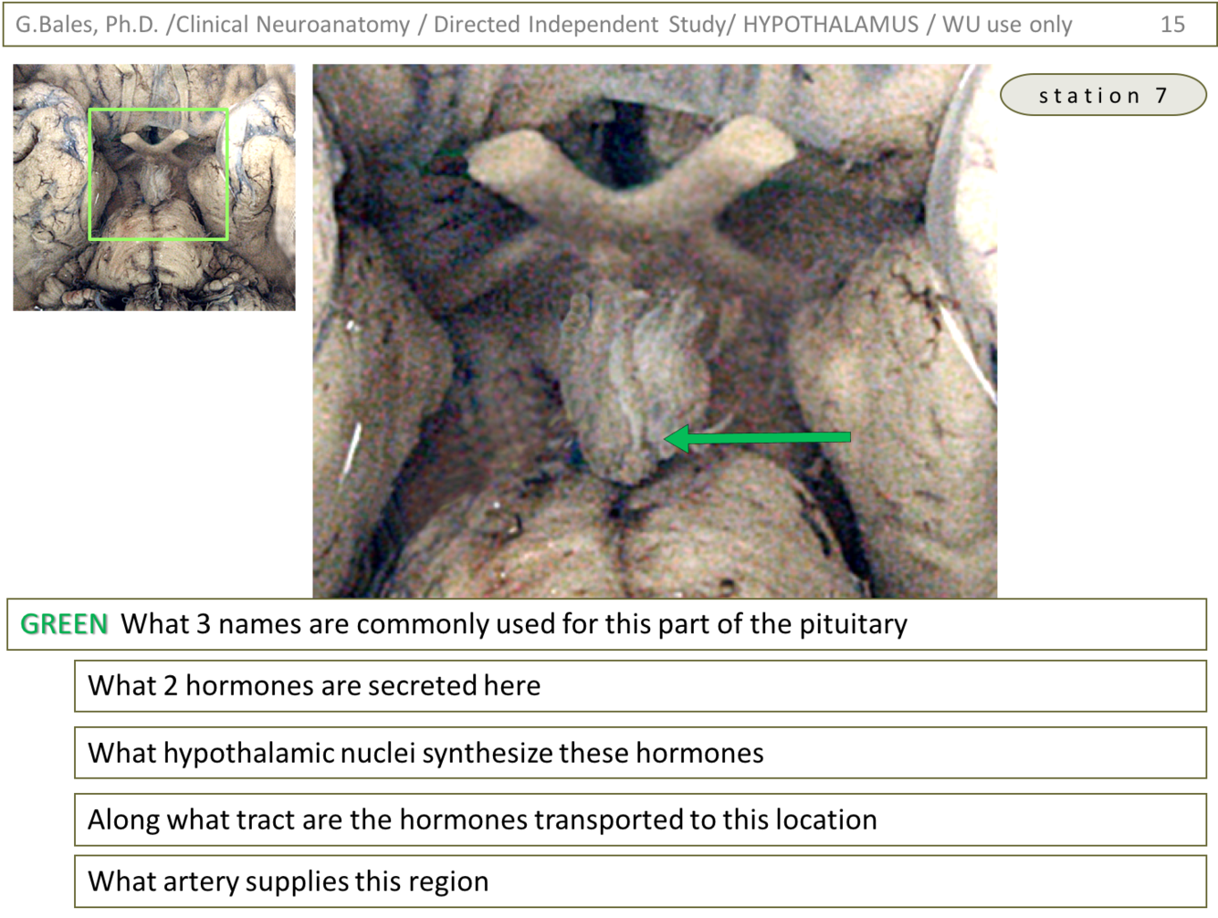 1) Green – posterior pituitary, neurohypothalamus, pars nervosa