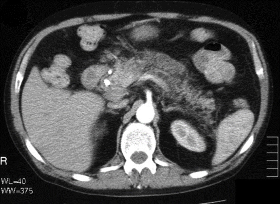 Only inherent contrast is seen in the image