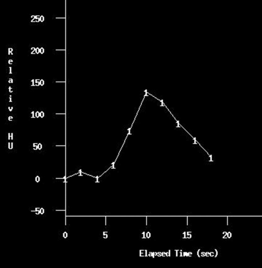 In the shown time-density graph generated by the bolus tracking method, the attenuation threshold is set at approximately ? HU.
