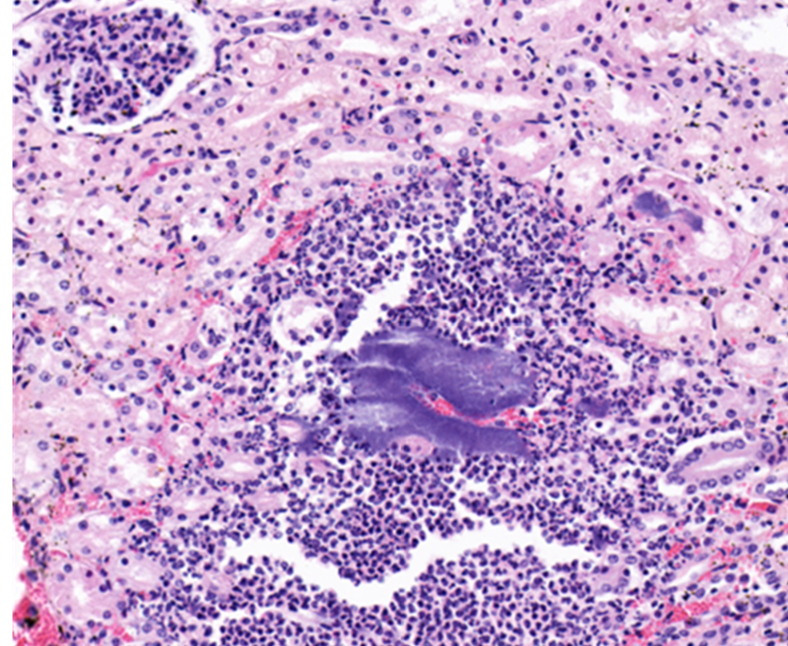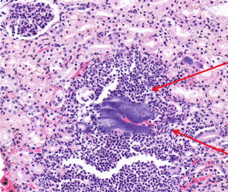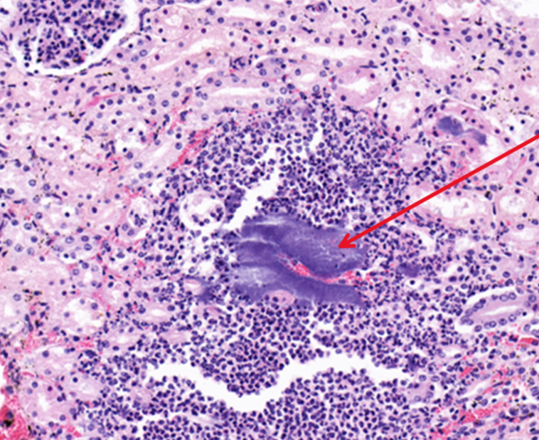 There are bacterial colonies trapped and proliferating within the capillaries, are they post mortem or are they important in the pathogenesis of the lesions?