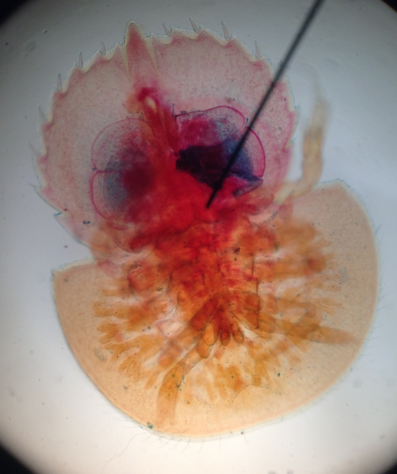 Hox gene expression shows that the carapace shape corresponds with the head of other arthropods