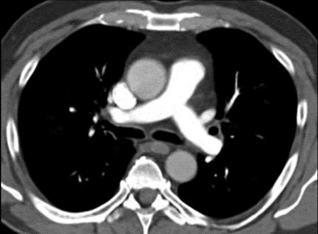 -Showed greater attenuation of the Pulmonary trunk, right + left Pulmonary arteries.