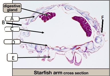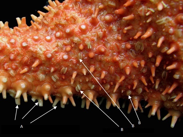 A - Tube feet. Extensions of the water-vascular system helping with movement