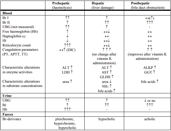 Tests for examination of the hepatic excretory function