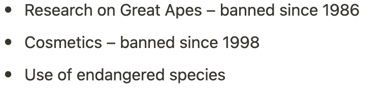 Ensure that things like a harm-benefit analysis is in the animals interst (veterinary action) + Specials laws empower certain people to carry out animal harms