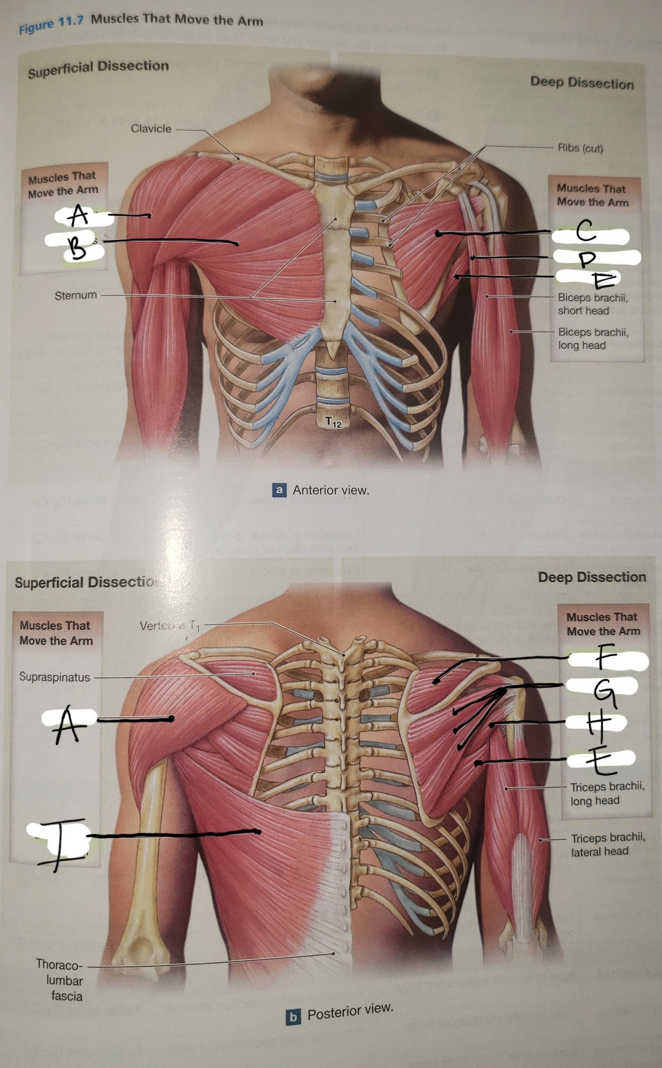 F) Latissimus dorsi: extends, adducts, & medially rotates arm