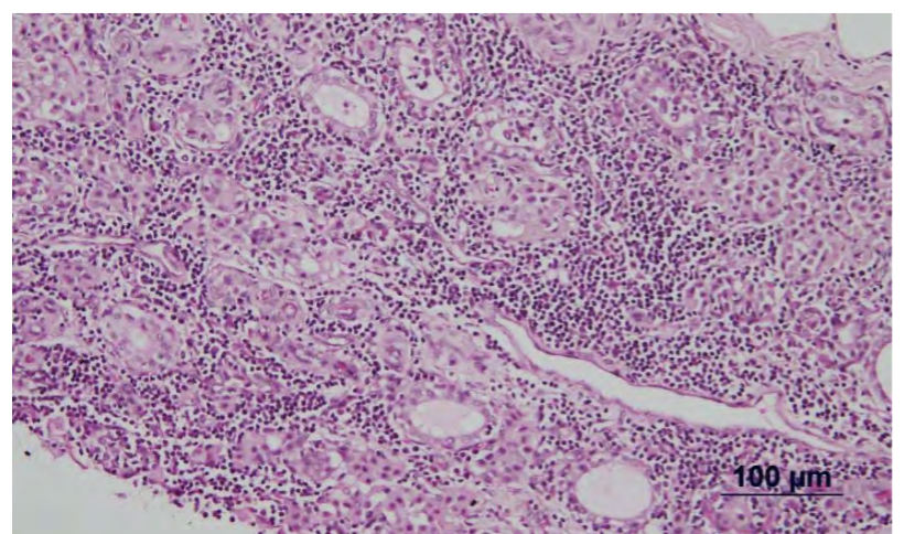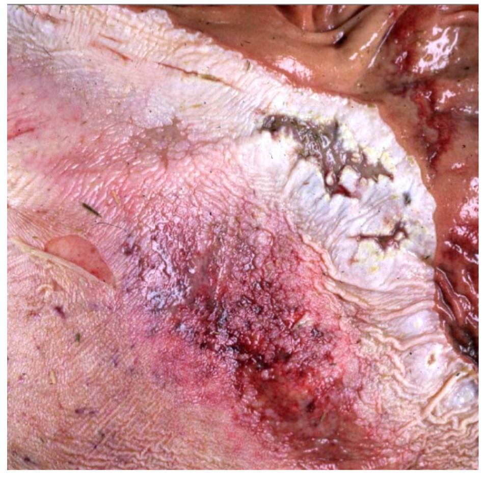 Multifocal to coalescing necrotizing (ulcerative) gastritis