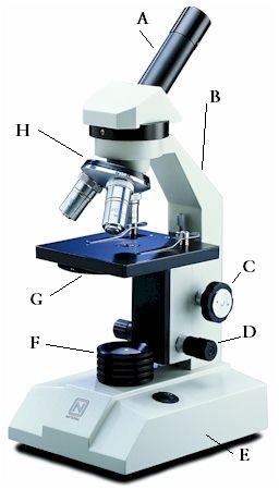 When using a light microscope, the you look through the _______ lens. This lens is _____ magnification.