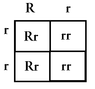 Make a probibilty chart for a Monohybrid cross between a Red flower (with one red allele and one white) and one White flower.
