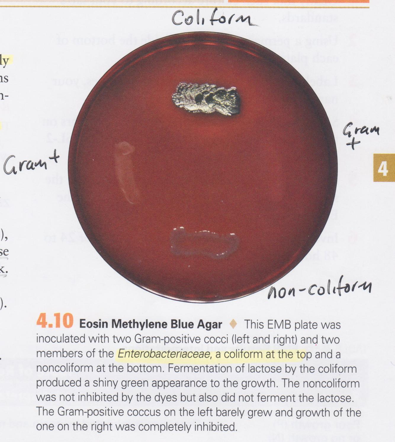 Poor/no growth, inhibited by eosin and methylene blue, Gr +