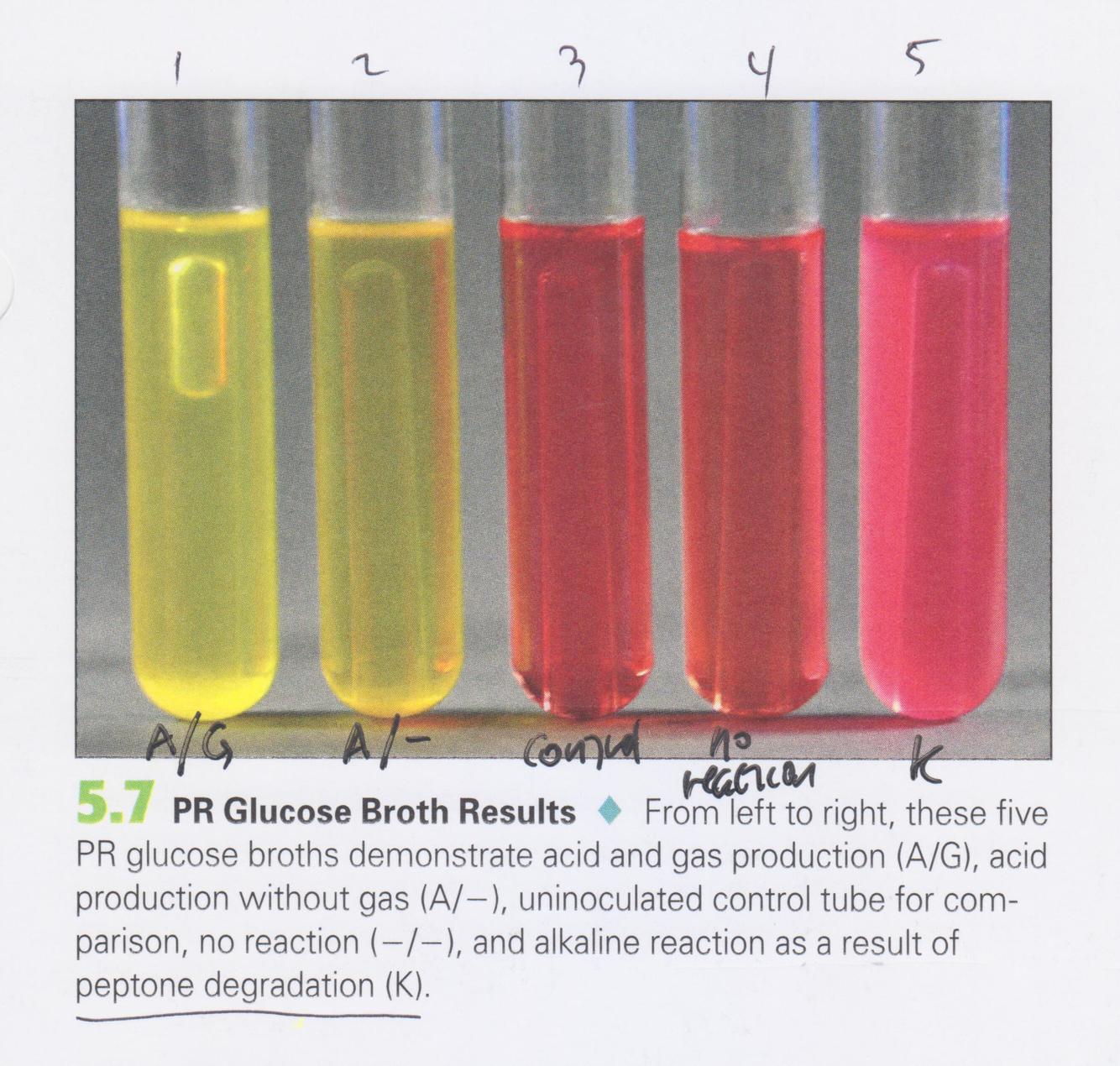 Yellow broth, bubble in tube, fermentation with acid gas, A/G