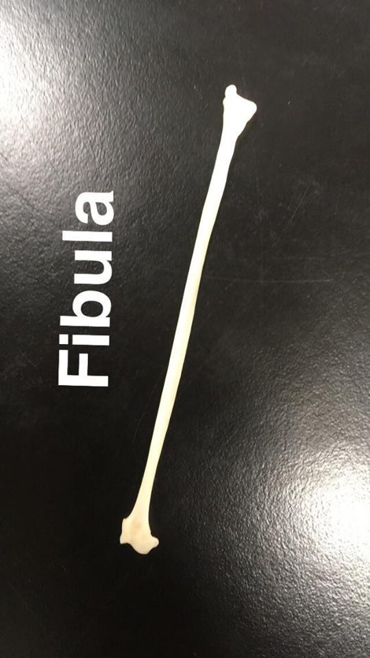 The fibula: the smaller of the two bones of the calf.