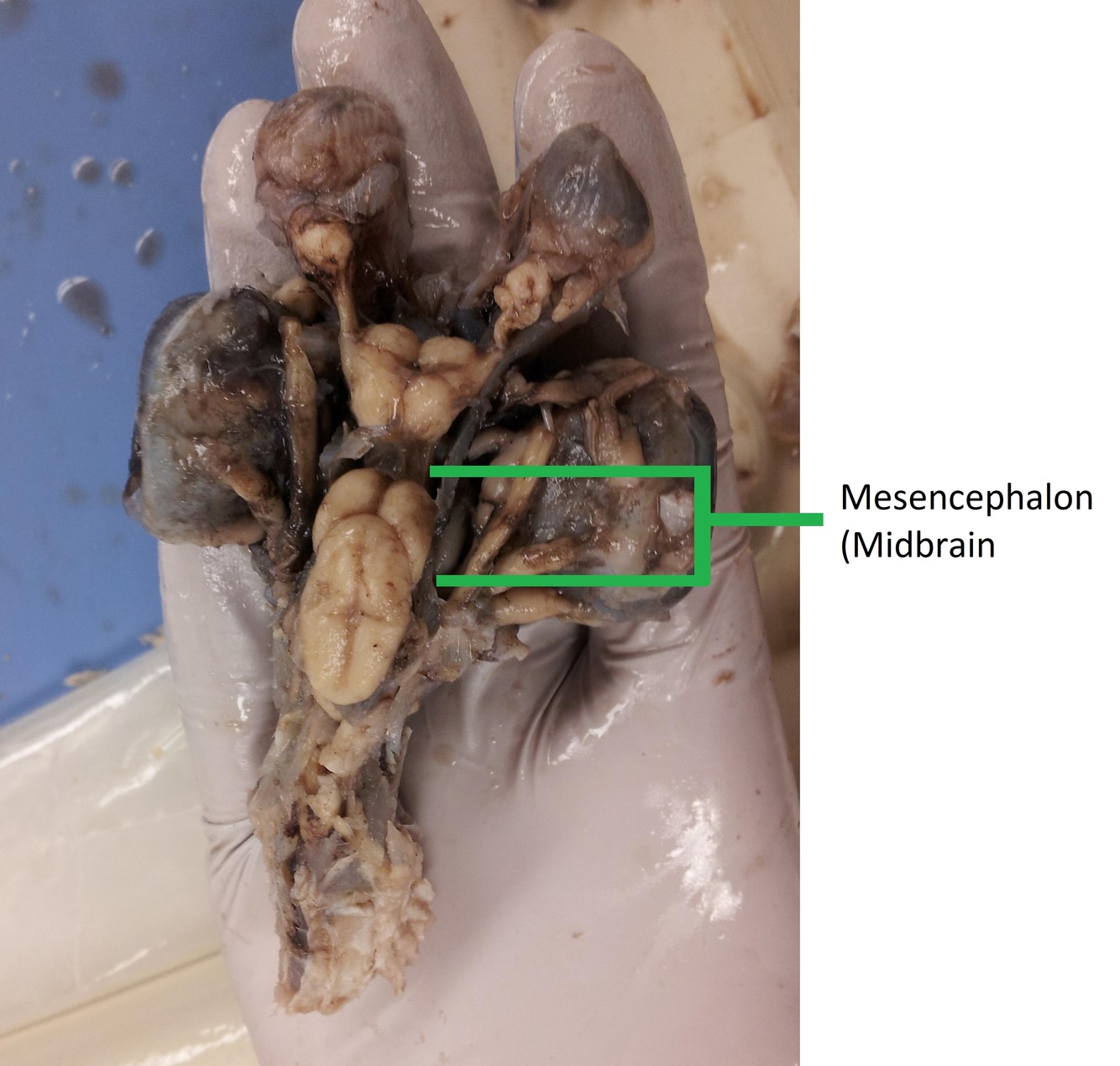 The mesencephalon is the midbrain. It is composed of the optic lobes.