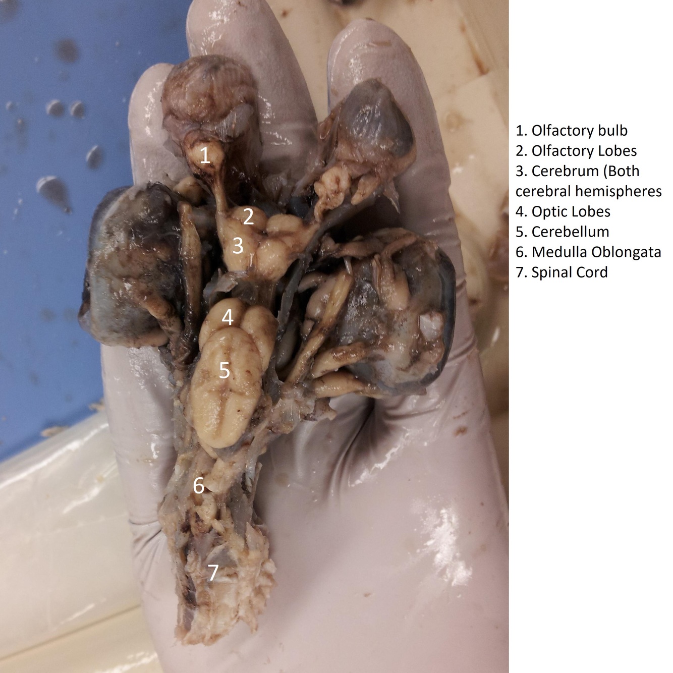 The optic lobes recieve information from the eyes, the lateral line system, the cerebellum, the olfactory epithelium and the skin.