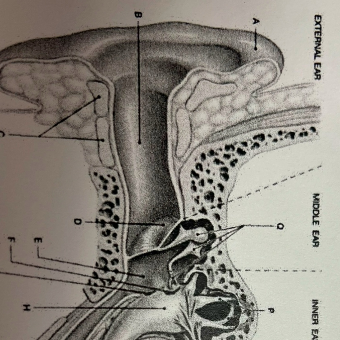 Auricle - external part of the ear, funnels sound waves to auditory canal