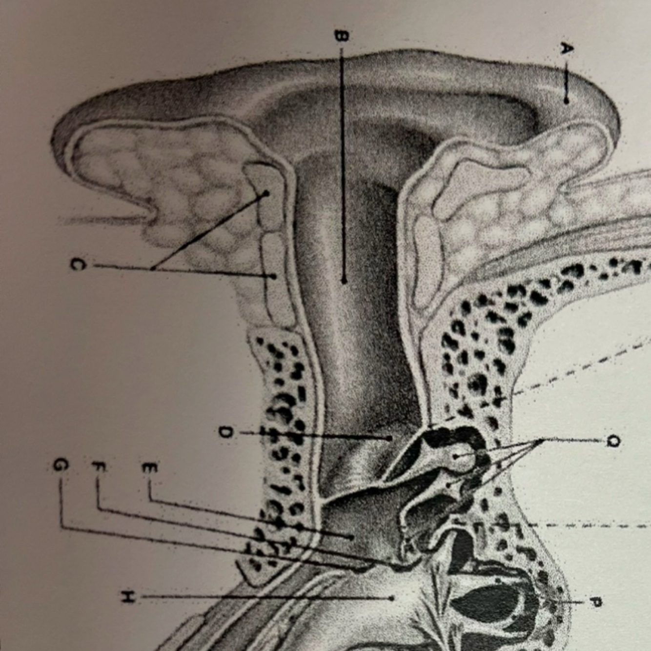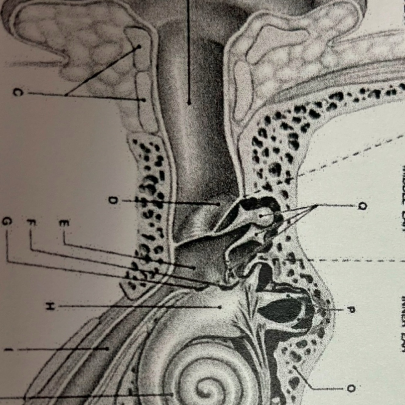 Eustachian tube - essential for equalizing pressure on both sides of the tympanic membrane, as well as for draining fluid from the middle ear.