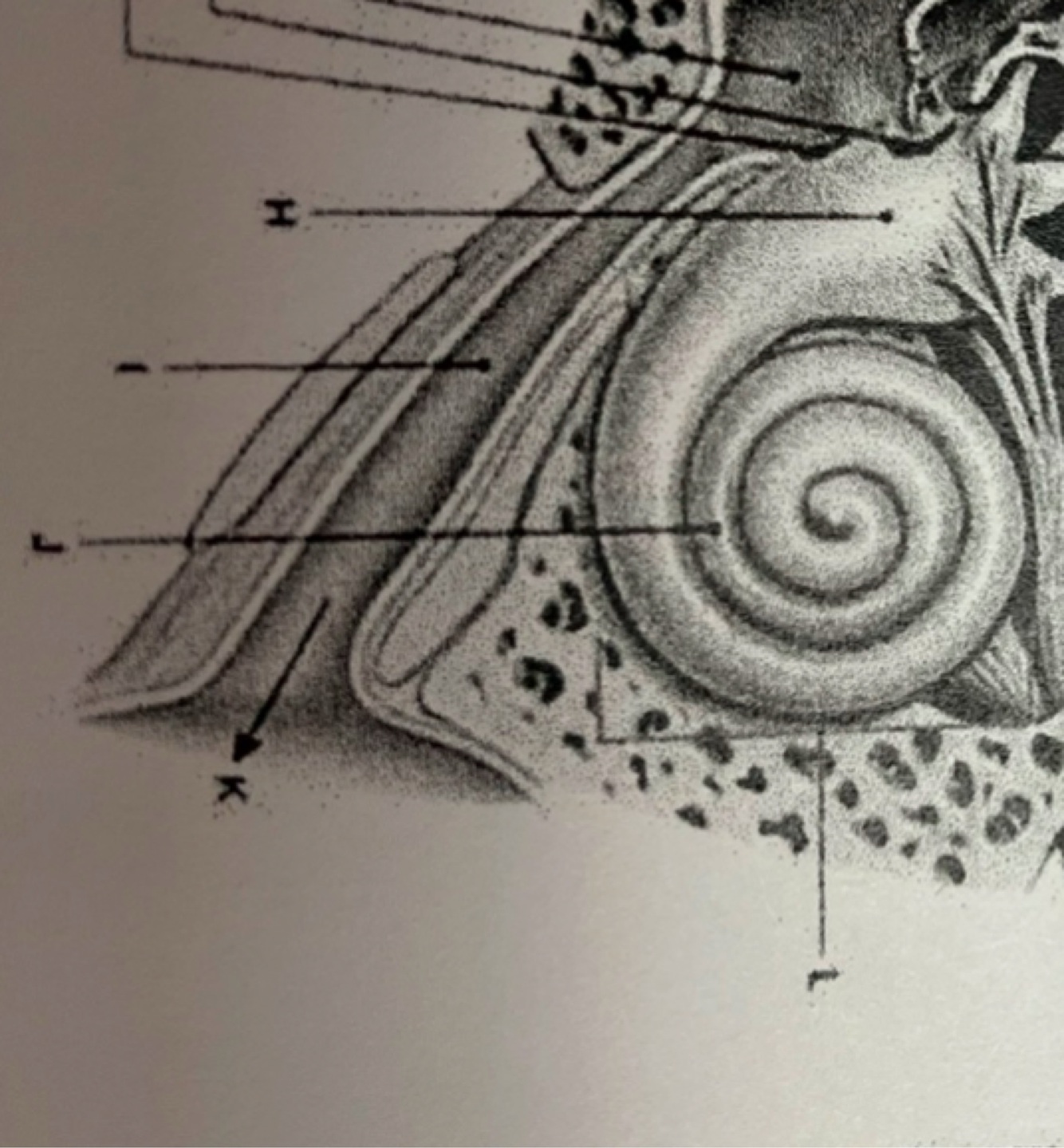 Bony labyrinth - The bony labyrinth is a complex, rigid, and hollow structure located within the inner ear. It is part of the temporal bone and houses the essential structures responsible for hearing and balance. It is filled with a fluid called perilymph and surrounds the membranous labyrinth, which contains endolymph.