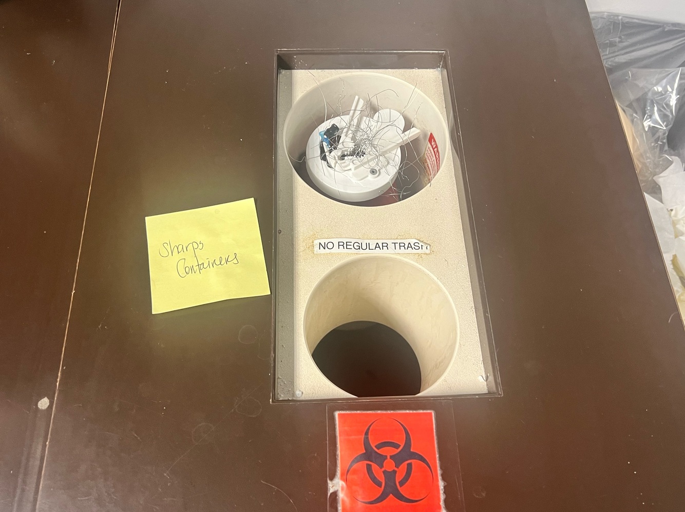 Biohazardous countainer for sharps (needles, scalpel blades, etc)